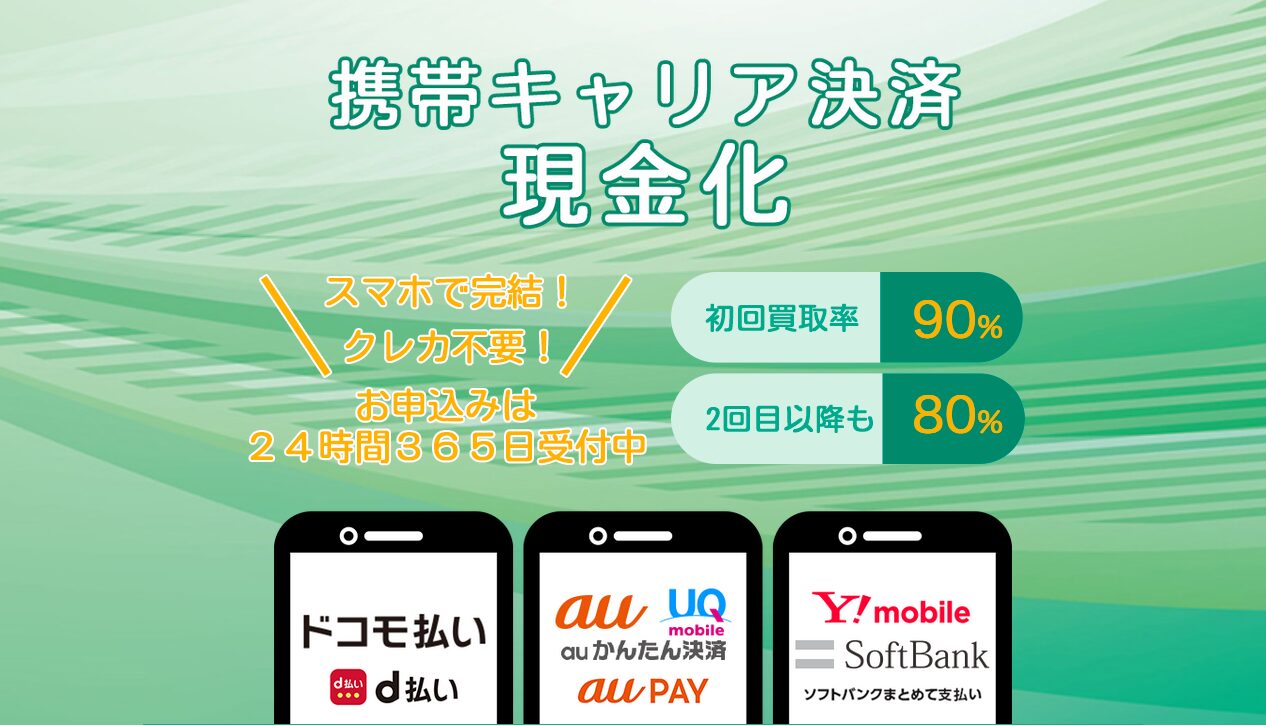 | サービス内容 | 携帯キャリア決済枠を使った現金化サービス |